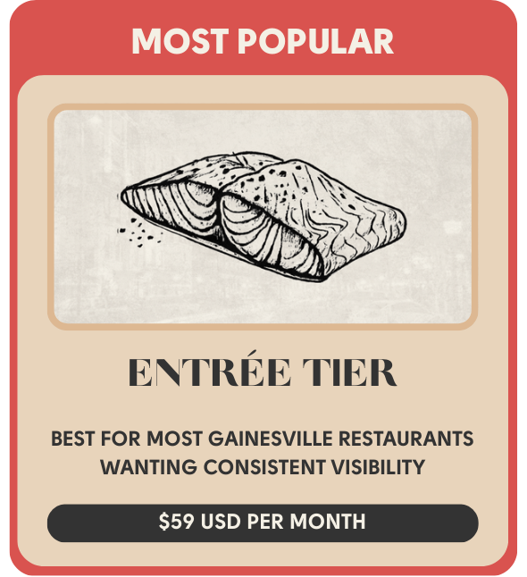Gainesville diners don’t decide where to eat after one post. They decide after seeing your name again and again. The EATGNV Partner Program ensures your restaurant stays: